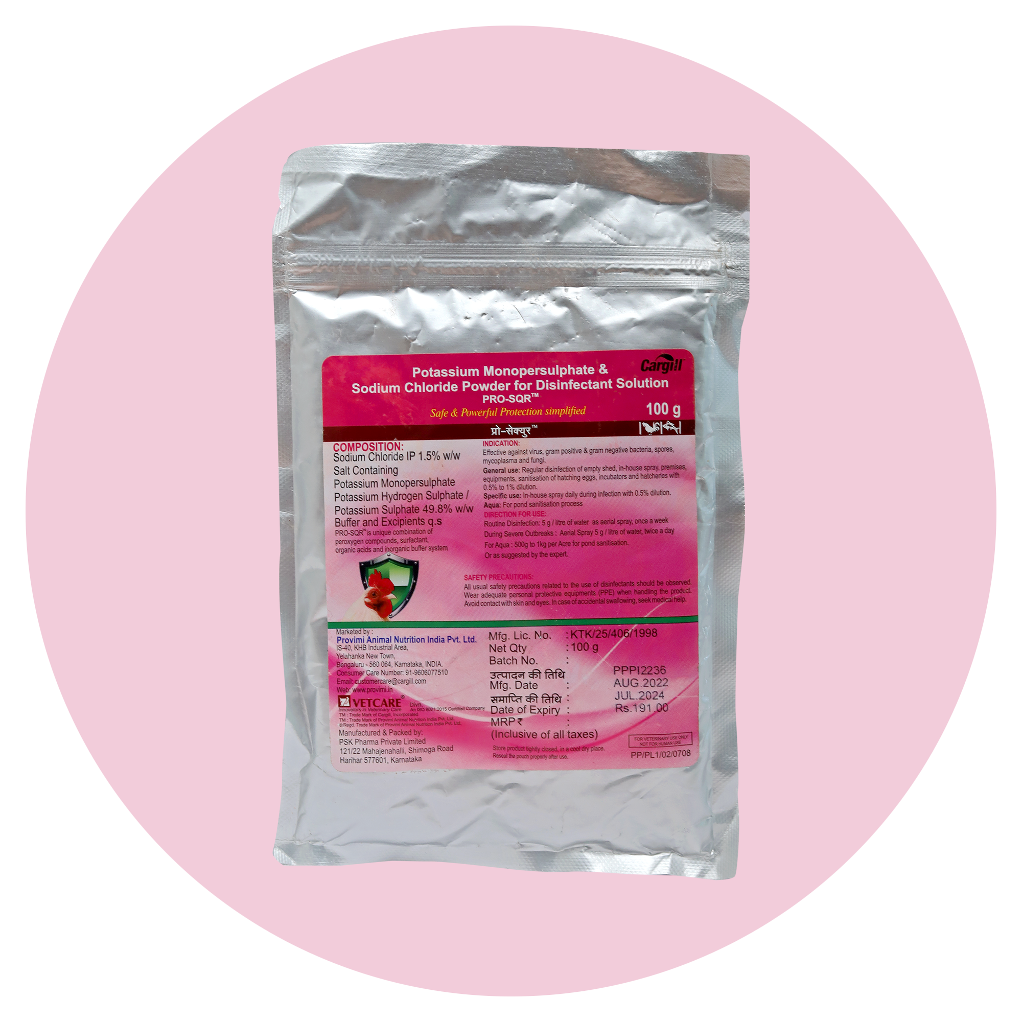 Pro SQR disinfectant powder is a broad spectrum veterinary disinfectant designed to maintain hygiene in poultry farms, animal houses, hatcheries and veterinary facilities. It helps control harmful micro organisms including bacteria, viruses, fungi and spores that can spread infections among animals and birds. It is a biosecurity disinfectant for poultry.