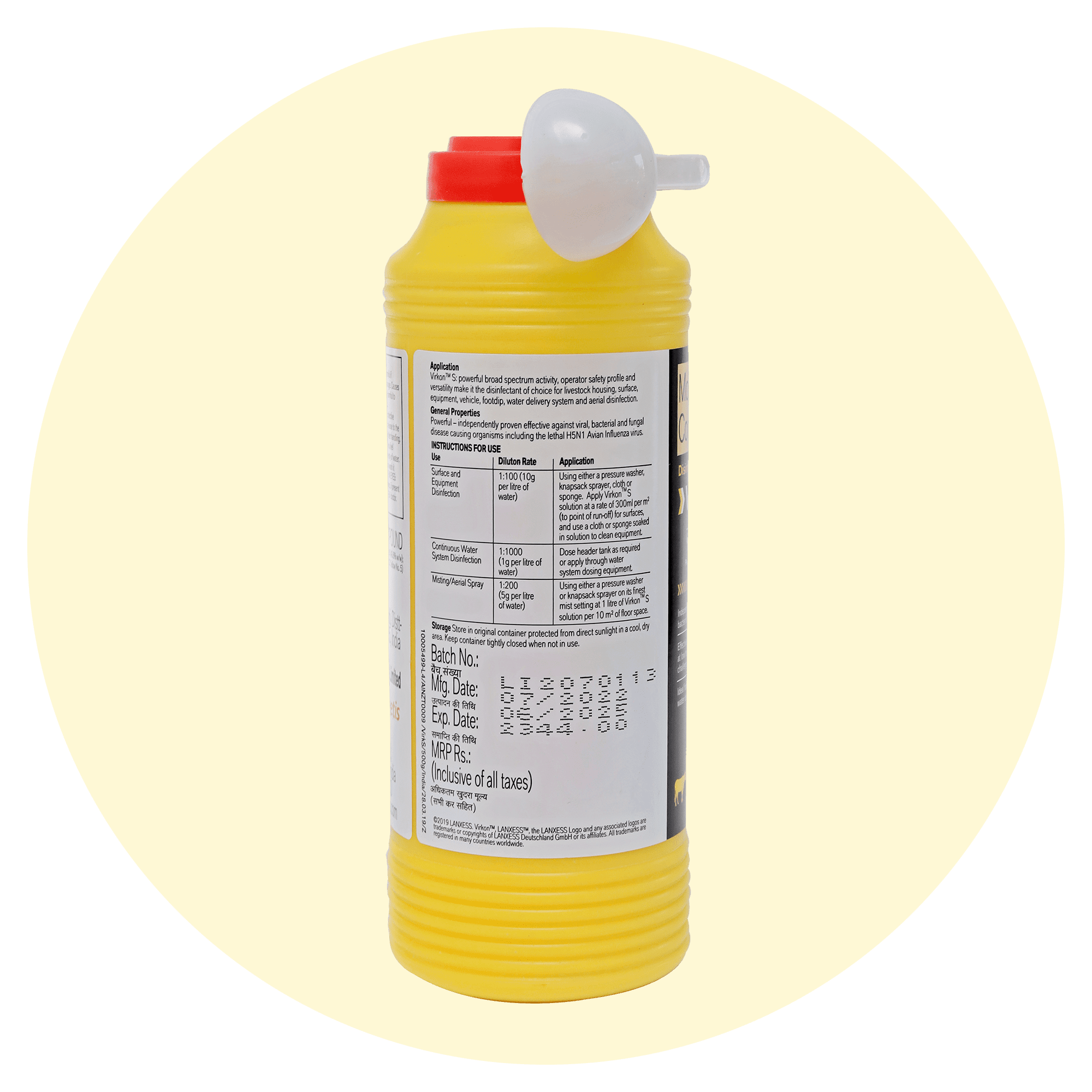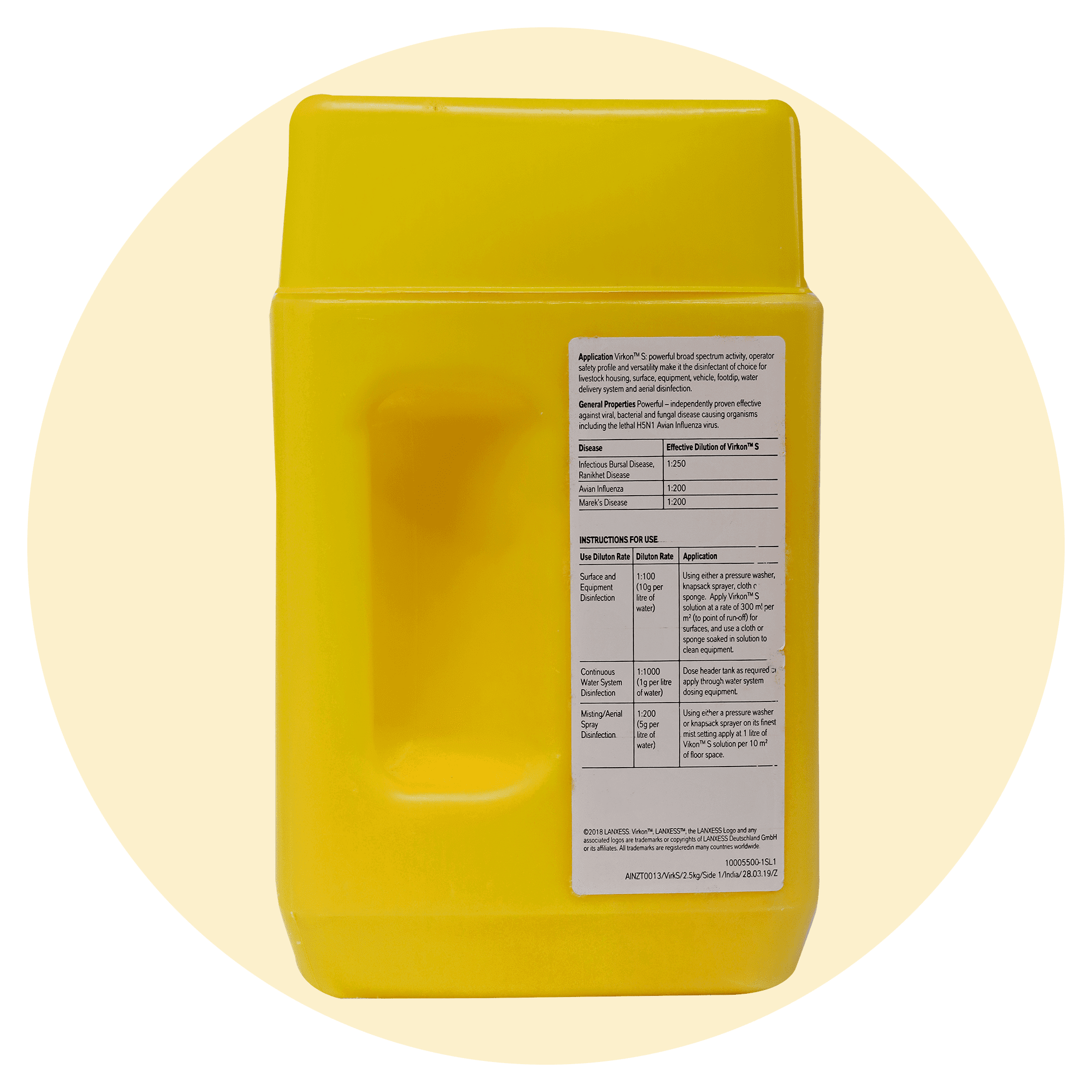 VersatilityĀ ā Effective for non-porous hard surfaces, agricultural production equipment, vehicles, wheels, boot disinfection and day-to-day farm disinfection.