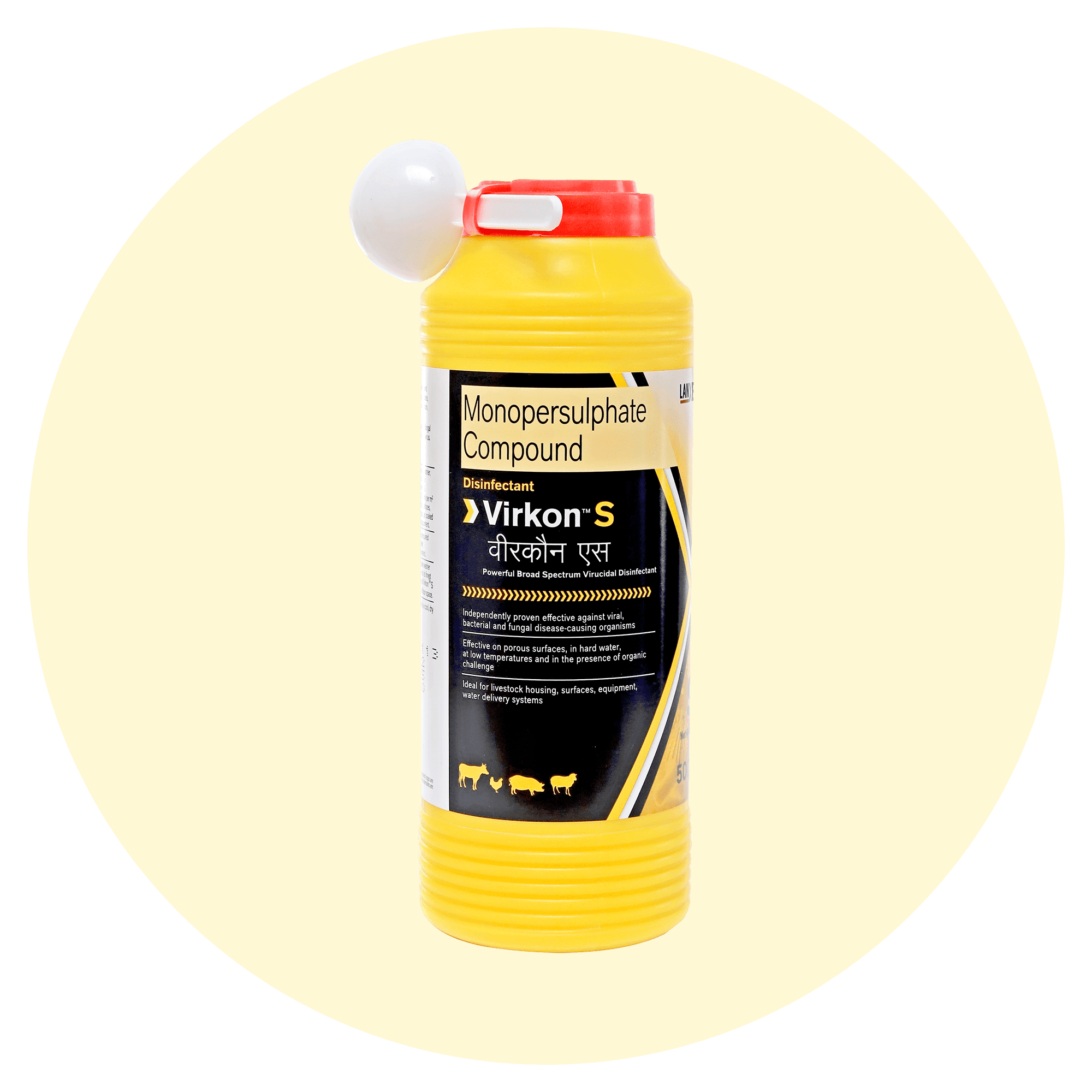 Virkon S Disinfectant is a powerful, broad-spectrum disinfectant specially designed for maintaining high-level biosecurity in poultry farms, livestock environments, veterinary clinics, and animal housing areas. It effectively eliminates harmful pathogens including viruses, bacteria, fungi, and spores, ensuring a clean and disease-free environment.